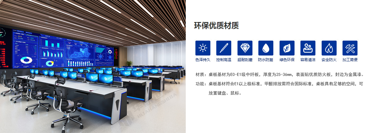 外观: 后屏风采用一体式国际铝合金型材,经氧化处理后再喷塑,根据需求分高、低两种版本;主框架为2.0mm优质冷轧钢板,其他装饰件为1.5mm优质冷轧钢板表面处理:钢板部分经脱脂、酸洗、防锈磷化处理,表面经典喷塑;桌板基材为E1级中纤板,厚度为25-36mm,表面贴优质防火板,封边为金属漆。